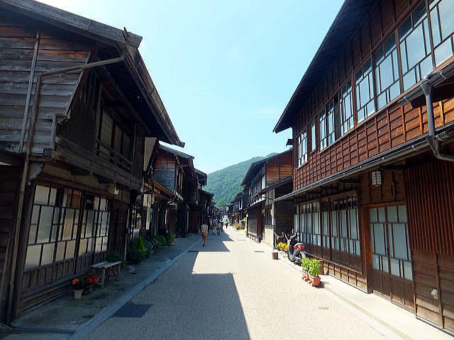 「鍵の手」は、下町の桝形と同様に、宿場内に道の屈曲を作り、敵の直進と見通しを防ぐという、宿場町を守るための施設として機能していました。 NHK連続テレビ小説「おひさま」のロケ地として使用されたとのことです。 杉玉を掲げた酒屋、軒灯りの旅籠、千本格子の家々が軒を連ね、そのにぎわいは「奈良井千軒」といわれた当時の面影が保存されています。