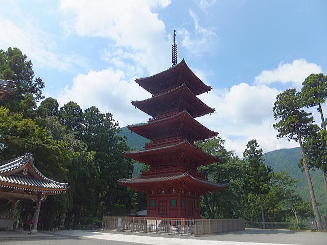 かつて身延山には、法華経信仰の象徴として五重塔が輝いていました。 万延元年(1860年)に再建された五重塔が、明治8年(1875年)の大火で焼失した後、五重塔の再建は長年にわたる悲願となっていました。 2009年5月、伝統的工法と現代技術の粋を結集し、元和5年(1619年)見延山に初めて建立された五重塔を復元しました。