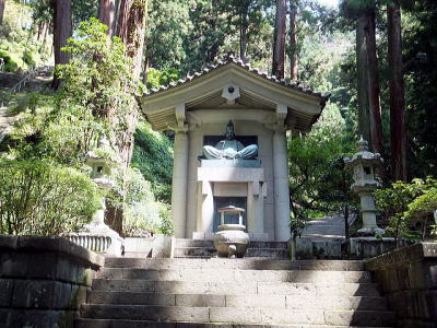 拝殿の前方にあるのが開基堂です。 日蓮を身延山に招いた南部実長を祀っています。 身延町指定文化財です。