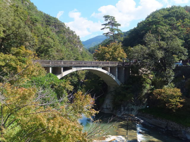 長潭橋(ながとろばし) 大正14年に竣工したアーチ橋で、建築雑誌にも取り上げられたこともある昇仙峡の玄関口として親しまれている橋です。 紅葉の時期には素晴らしい景観を楽しむことができそうです。