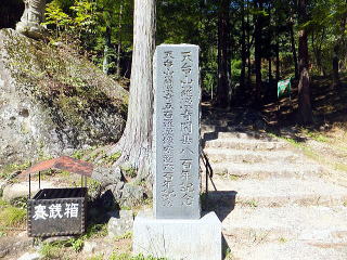覚円峰の右手にあるのが天狗岩です。 「夢の松島」では散策路から下の岩場に降りることができます。 また、レストランや休憩所も準備されています。 レストランから少し進んだところに、一介の百姓ながら昇仙峡新道を切り拓き今日の観光道路の端緒を開いた長田円右衛門の碑があります。