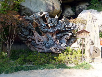 仙娥滝から長い階段を登り滝の上部に出ると、右手は商店街で、左手に「昇玉堂」と「天幸五龍神」があります。 天幸五龍神には「龍は風を読み、風の動きとともに姿を消し、水の流れにあっては、姿を現しよく留まる。・・・といわれ風水の語源となる縁起の良いものです。猜疑心を捨て、信ずる心でお願いしてみて下さい」と掲示されていました。