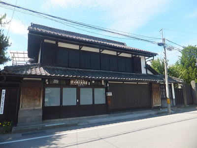「本町交差点」から100mほど進むと、北国街道の両側に古い商家の並ぶ街並みとなります。 右手の最初の建物が「大塚本店」その隣が「塩川五右衛門」です。 「大塚本店」は、外部、内部ともに江戸時代の建物の形をよく留めた造り酒屋で、寛政11年(1799年)の建築です。 大商家の特徴である二列に並んだ居間の間取りを持っています。