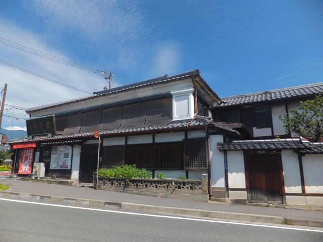 「大塚味噌醤油点」の創業は明治20年です。 母屋と並んで袖蔵があるのがこの建物の特徴で、母屋と蔵は2階でつながっています。 母屋は江戸後期、蔵は大正時代に建築されたものです。 蔵に掲げられた黒漆喰のコテ細工の看板が堂々としています。 「醇良にして独特な風味」と賞された老舗の味を今に伝えています。