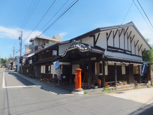 「ギャラリーつたや」は江戸時代から昭和初期まで、商人宿として繁盛した旅籠「つたや」です。 道の拡幅で軒は切られていますが、路地に続く壁が美しいです(写真なし)。 俳人の高浜虚子の常宿で、いくどとなく仲間を集めて句会を催し、その時の作品が現在でも各部屋に飾られています。 現在は、骨董や手作り工芸品などを扱う6店が各部屋に出店する共同ギャラリーとなっています。