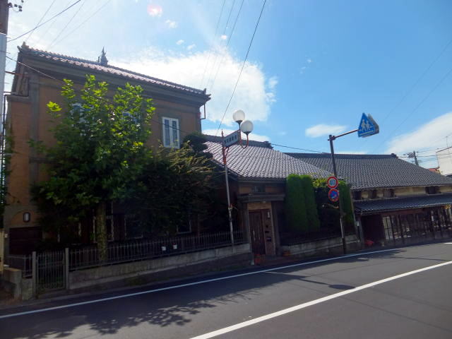 「本町交差点」にあるのが「旧角の大塚」です。 大塚酒造の小売り部として、大正時代に建てられた建物です。 建物の奥には大きな蔵があったとのことです。 「角の大塚」と呼ばれて市民にも親しまれていましたが、現在は空き店舗です。