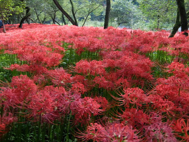 赤い花な〜ら曼珠沙華・・・・・ その曼珠沙華が500万本! 真っ赤な絨毯のような見事な世界を演出してくれる巾着田(きんちゃくだ)!